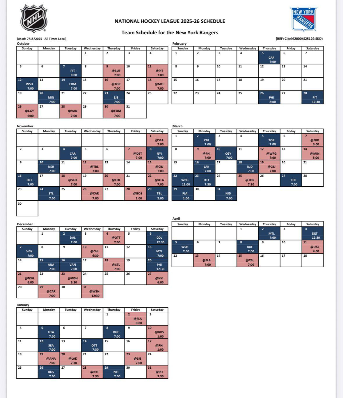 Here'S A Look At The Full #Nyr Schedule For 2025-26 for New York Rangers Printable Schedule”]